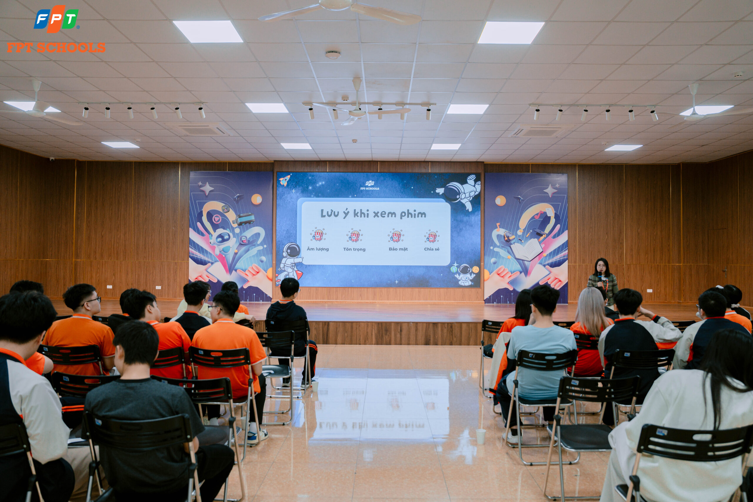 Không cần đến rạp chiếu phim, ngay tại FPT School Tây Hà Nội, các FSchoolers đã có cơ hội tham gia một buổi xem phim mang trải nghiệm “chuẩn 5 sao” với đầy đủ bỏng ngô, nước mát và không gian ấm cúng. Tuy nhiên, điều làm nên dấu ấn đặc biệt của chương trình CI-NÊ TALK không nằm ở trải nghiệm giải trí, mà ở hành trình đối thoại sâu sắc xoay quanh chủ đề: