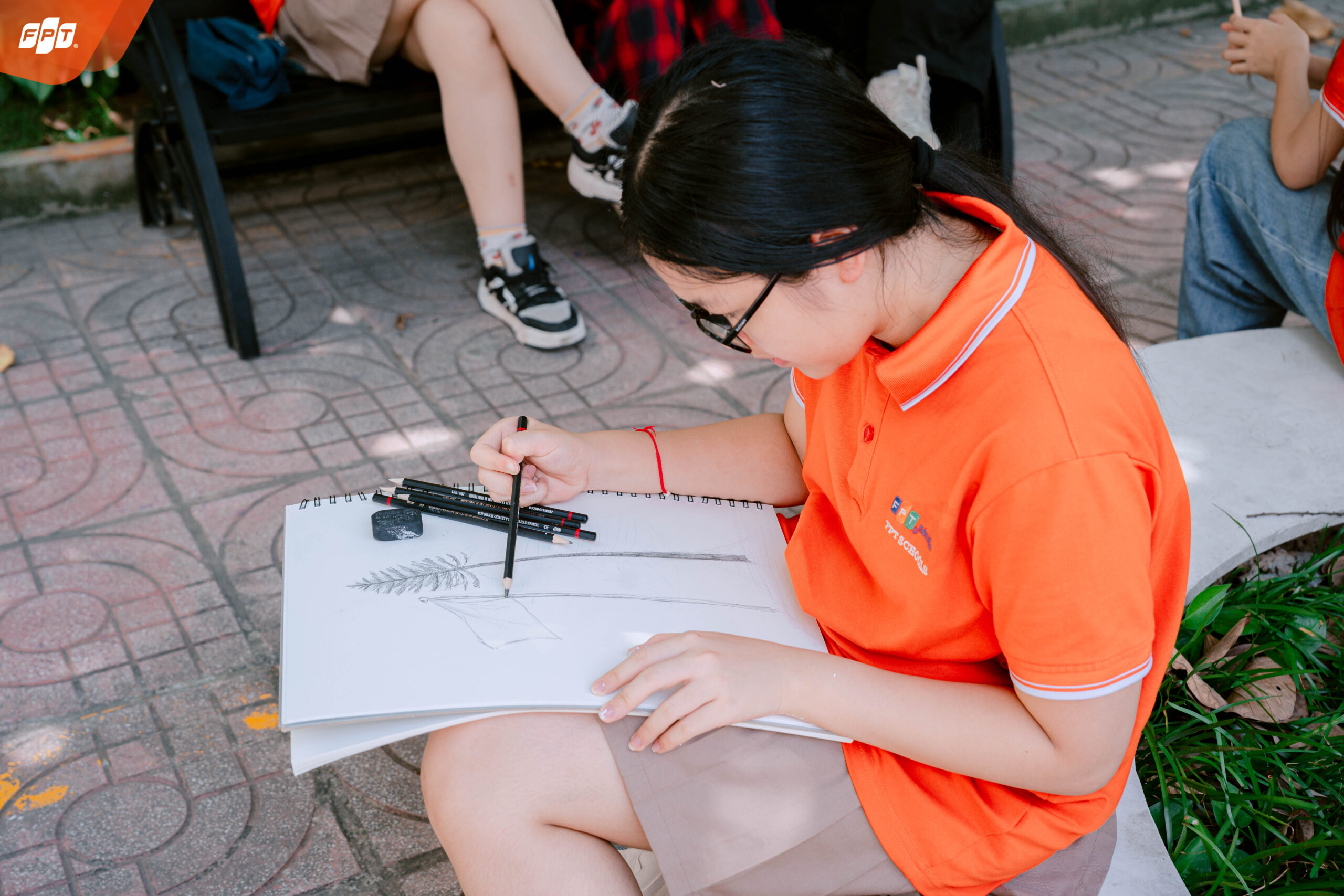 Đưa học sinh ra ngoài trời học vẽ cũng là một cách để rèn luyện tính độc lập, khả năng tự quan sát và tự quản lý thời gian. Phụ huynh hoàn toàn có thể yên tâm rằng những hoạt động như thế này giúp con vừa học tập vừa thư giãn, tránh áp lực học đường. Đây là một phần quan trọng trong triết lý giáo dục của FPT School – học tập gắn liền với trải nghiệm thực tế, phát triển toàn diện cả về trí tuệ và cảm xúc.