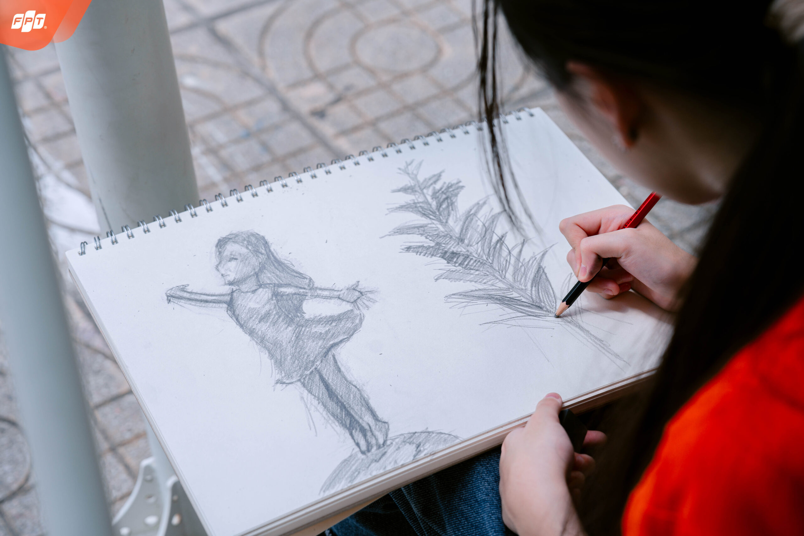 Bạn đã bao giờ thử học vẽ tranh ngoài trời và để thiên nhiên trở thành “người thầy” đặc biệt chưa? Tại FPT School Tây Hà Nội, các bạn học sinh lớp 10C1 vừa có một tiết học vẽ tranh ký họa ngoài trời đầy cảm hứng. Không còn bốn bức tường quen thuộc, “lớp học đặc biệt” này đưa các bạn đến gần thiên nhiên, khơi mở khả năng sáng tạo và nuôi dưỡng cảm xúc tích cực.