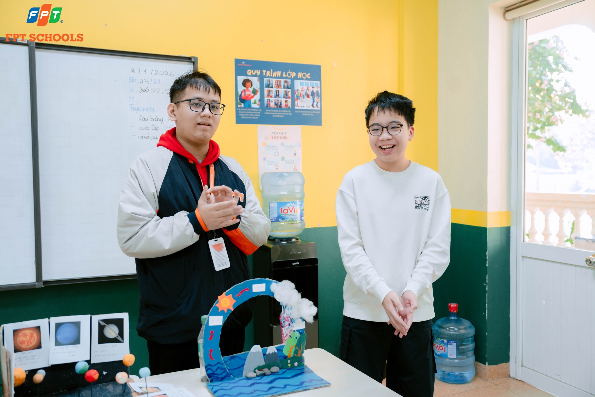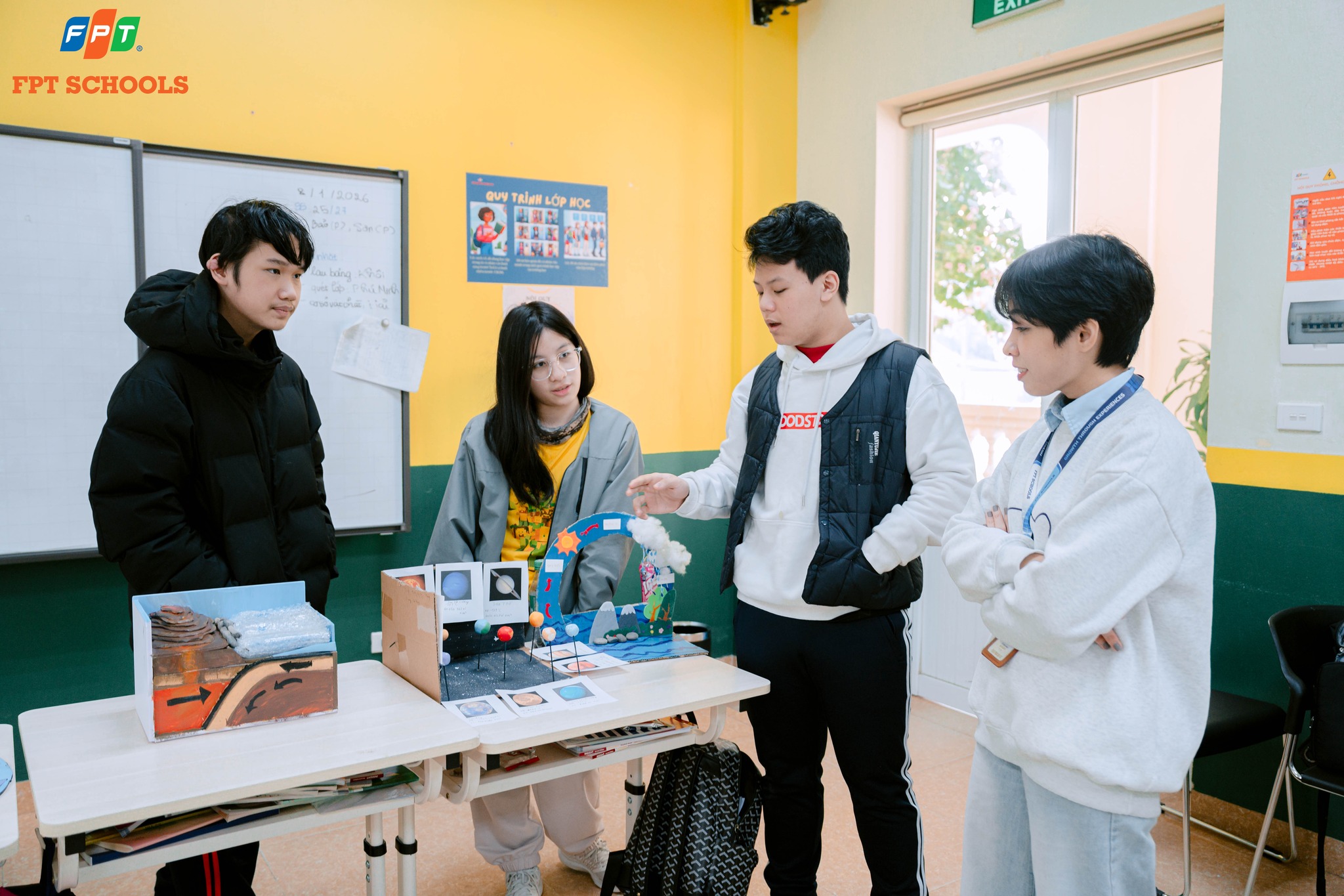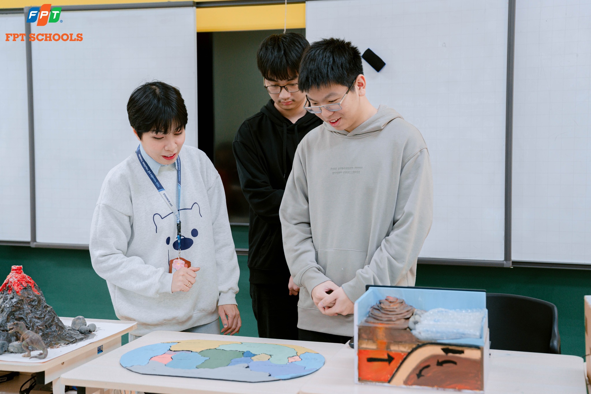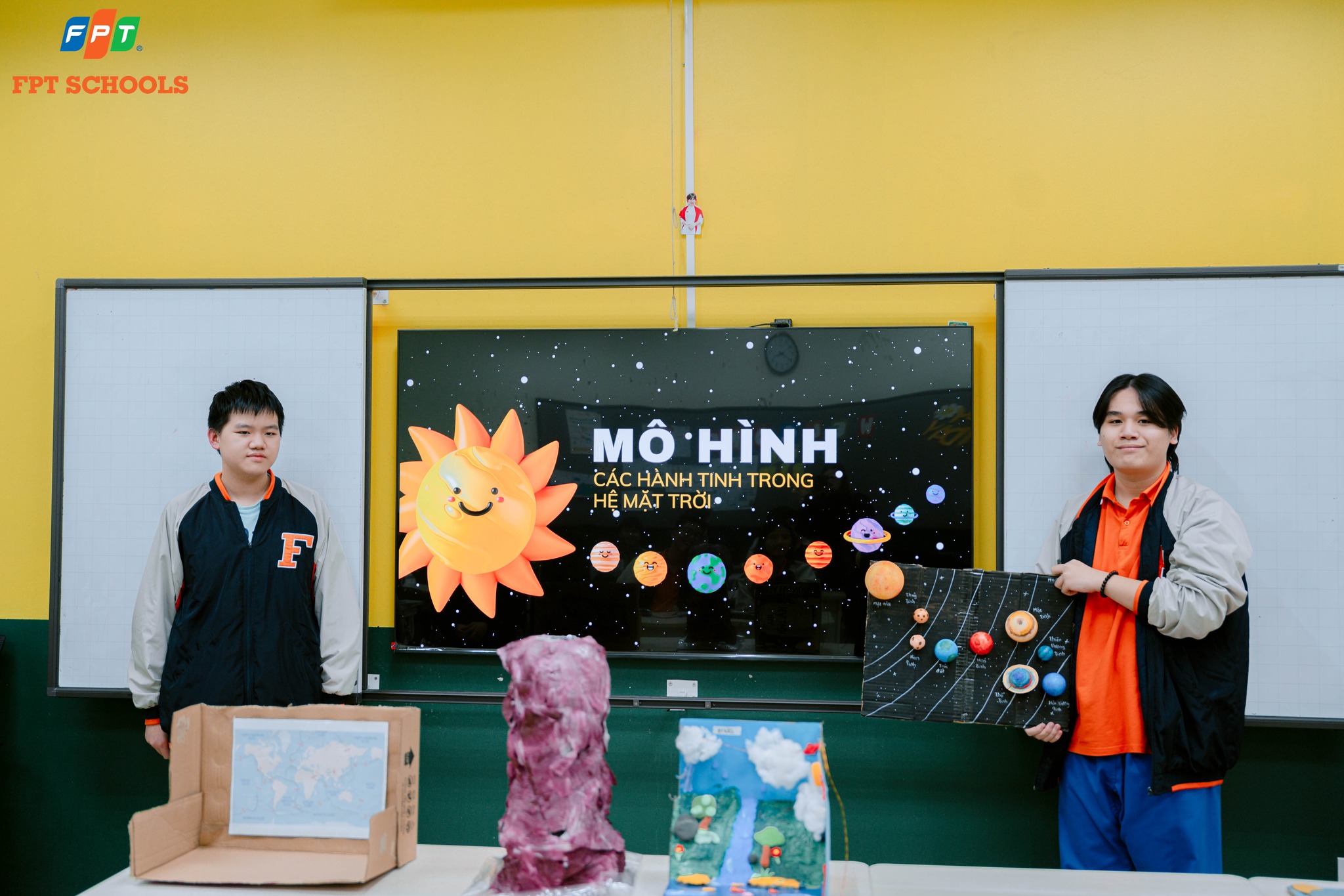 Việc thi công các mô hình cũng là lúc các kỹ năng mềm của học sinh nhà F được bộc lộ rõ nét nhất. Trong quá trình làm việc nhóm, các em phải học cách quản trị dự án, phân bổ thời gian và giải quyết những mâu thuẫn nội bộ để hướng tới mục tiêu chung. Những kỹ năng này thường khó có thể hình thành nếu chỉ học tập theo phương pháp truyền thống. Qua dự án, việc đổi mới trải nghiệm học tập đã thực sự biến lớp học thành một “phòng Lab” mini, nơi trí tuệ tập thể được tôn vinh. Nhìn cách các em tái hiện sự dịch chuyển địa tầng hay cấu trúc vũ trụ, có thể thấy rõ sự đầu tư nghiêm túc về tư duy sáng tạo cũng như tinh thần làm việc nhóm gắn kết – những giá trị cốt lõi mà FSchool luôn nỗ lực bồi đắp cho mỗi học sinh trên con đường trưởng thành.
